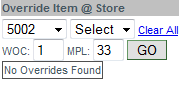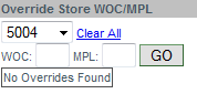 Override Item @ Store displays any items whose WOC and/or MPL have been overriden