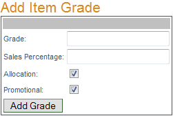 To add an item grade enter the Grade, Sales percentage, if the grade is to be included in allocations and if it is a promotional grade then click "Add Grade".