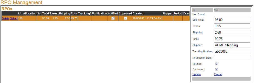 Update to save. Once the retailer has approved the RPO place a check mark in the box next to "Approved:" and click