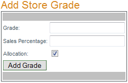 To add a store grade enter the grade name, the sales percentage it will be associated with, if it is to be used in allocations and click "Add Grade".